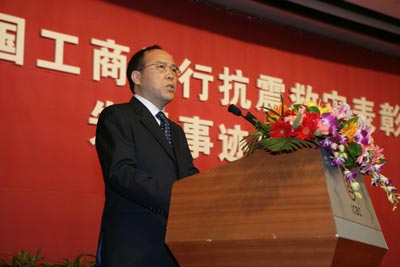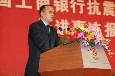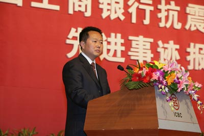 2008年7月1日,中国工商银行党委书记、董事长姜建清在抗震救灾表彰暨先进事迹报告会作《大力弘扬抗震救灾精神 夺取抗震救灾和改革发展双胜利》的讲话