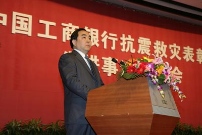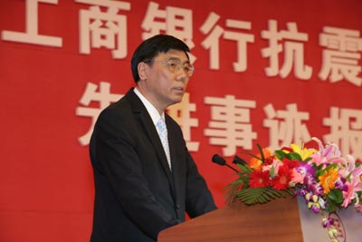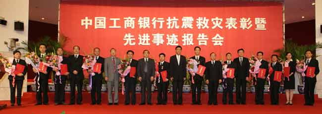 2008年7月1日,中国工商银行党委副书记、行长杨凯生主持抗震救灾表彰暨先进事迹报告会