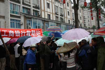 (图四)5月13日,工行四川省分行在重灾区都江堰市进行社会救助