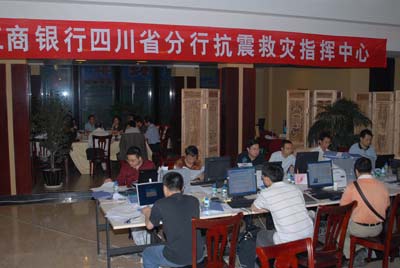 (图五)工行四川省分行抗震救灾指挥中心干部员工夜以继日的工作