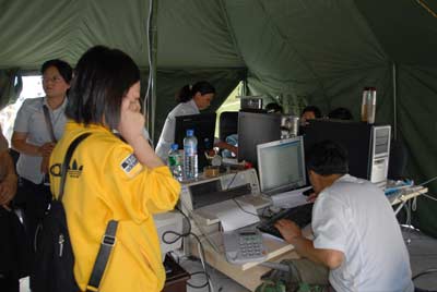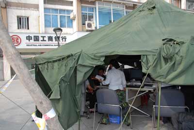 工商银行相关负责人介绍说,该行已拨付1000万元专款用于地震灾区受损机构网点和办公设施的抢修,要求灾区各机构在安全的基础上积极创造条件,尽快恢复营业。工行四川都江堰支行干部员工克服人员受伤、机具受损、水电等各项资源短缺等重重困难,在确保人员安全的前提下,于5月14日在都江堰支行东门分理处门前搭建、设立了帐篷应急业务处理点,并当即办理了一笔金额为20万元的现金支票赈灾款业务,被当地百姓亲切地称为“帐篷银行”。考虑到灾区部分营业网点建筑受损严重,无法在室内进行正常营业,工商银行已决定立即调拨100台ATM机支援四川灾区,临时布放到安全的、有利于居民存取款的场所,以满足灾区群众日常的现金支付急需。