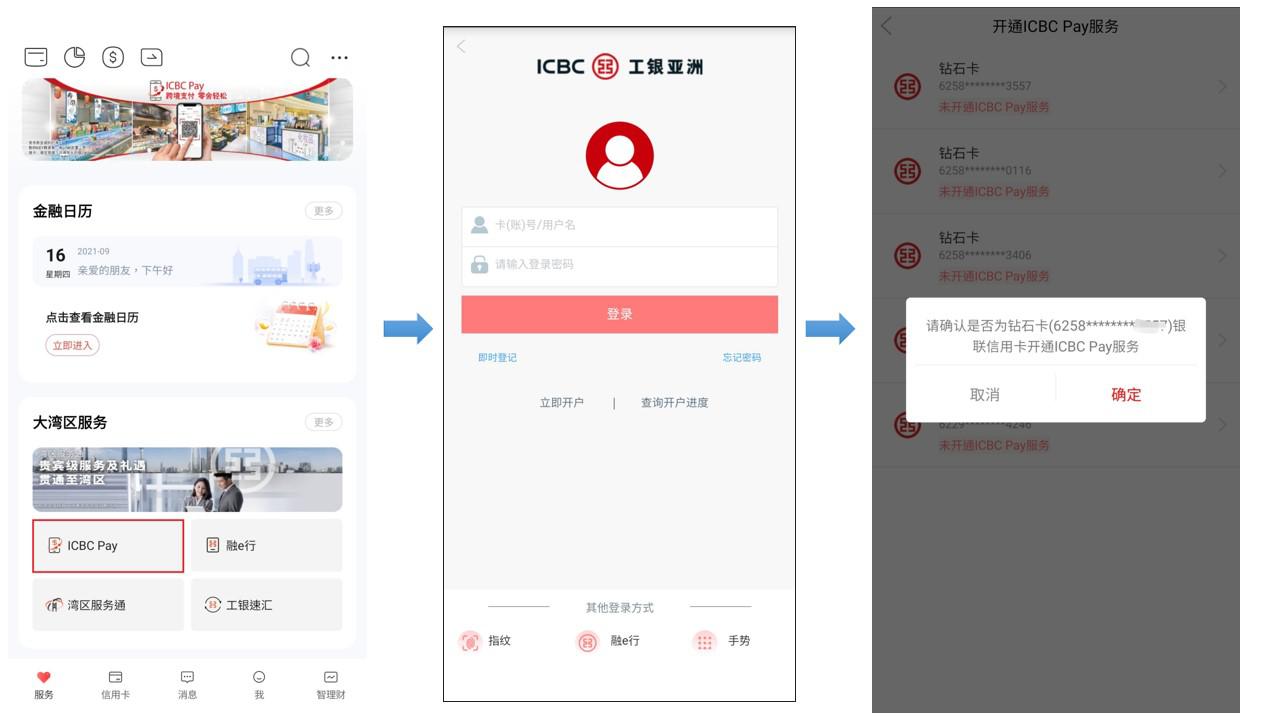 只需几个步骤,即可开通ICBC Pay