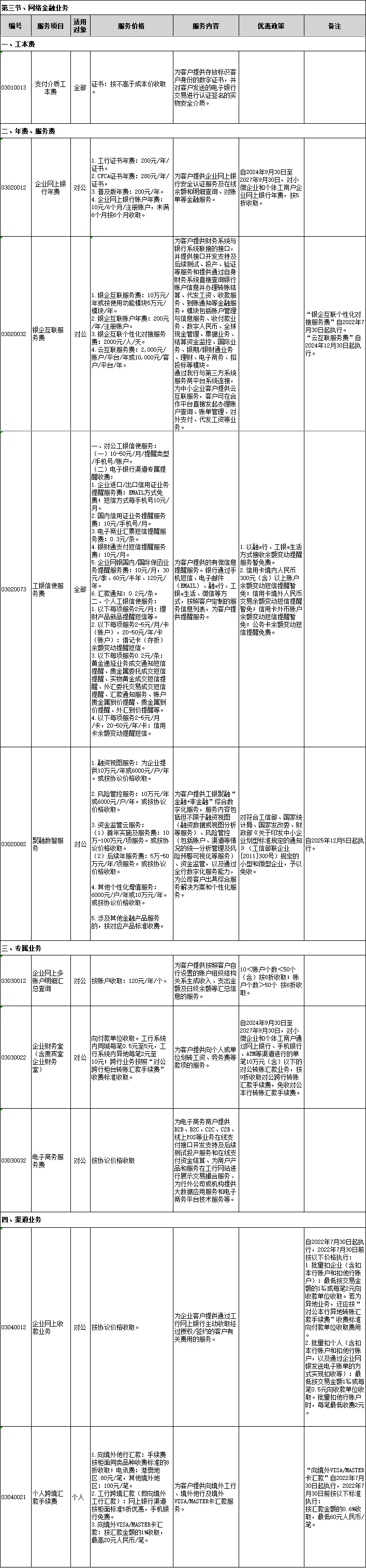 根据《商业银行服务价格管理办法》(中国银监会、国家发展改革委令〔2014〕第1号)、《国家发展改革委、中国银监会关于印发商业银行服务政府指导价政府定价目录的通知》(发改价格〔2014〕268号)、《关于取消和暂停商业银行部分基础金融服务收费的通知》(发改价格规〔2017〕1250号)、《关于降低小微企业和个体工商户支付手续费的通知》(银发〔2021〕169号)、《关于规范银行服务市场调节价管理的指导意见》(银保监规〔2022〕2号)以及国家发展和改革委员会制定的《政府定价的经营服务性收费目录清单》等相关规定制定本价目表。本服务价目表自2024年9月30日起生效,所列优惠政策自本服务价目表生效之日起生效,至本服务价目表失效之日起终止,另有规定的从其规定。