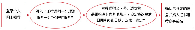 在网上自助签订、查询T+0理财服务协议,您需拥有我行理财金卡,且该卡是“金融@家”个人网上银行的注册卡,并申领U盾(个人客户证书)。签订各项理财协议前您需先签订《中国工商银行网上银行个人理财服务总协议》。