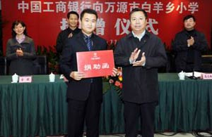 张福荣副行长代表工行向万源市白羊乡小学捐款35万元用于修建学生食堂