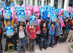 4、捐资35.6万元,通过参与扶贫基金会 “2010年灾区及全国贫困地区学生关爱行动”项目,向通江县陈河中心小学和钟凤乡中心小学、南江县凉水小学和贵民九义校、万源市罗文镇中心小学校发放3001个学生型爱心包裹(包括基础学习文具、美术用品及手工课用具共计134件)和25个学校型体育包裹,让贫困学生感受到了社会的温暖和关爱,也有利于促进学校教学水平的提高。