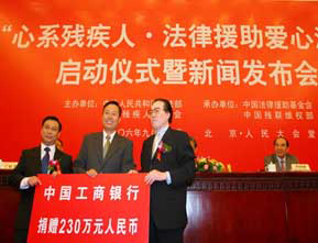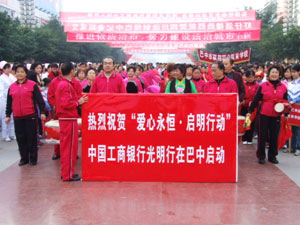 ● 2006年,向我行第五批援疆干部挂职单位新疆生产建设兵团农十二师和新疆阿勒泰地区布尔津县县委捐赠人民币90万元、旧电脑95台,用于改善当地学生的学习和生活条件,提高当地政府的办公自动化水平;向国际小母牛组织香港分会捐款80万港币,并与定点扶贫工作有机结合,在四川省万源市和南江县开展家庭养殖项目,帮助当地农民脱贫致富,同时传播自立自强的精神和互助帮扶的爱心;在第十五个国际残疾人日捐赠人民币230万元,与司法部、中国残疾人联合会在人民大会堂共同举办了“工行携手·同一首歌与残疾人法律援助同行”大型公益晚会。