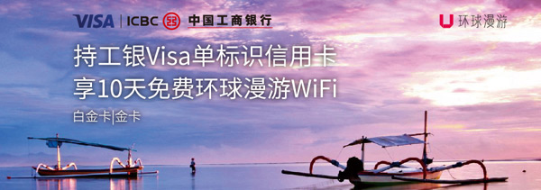 工银VISA单标识信用卡白金卡、金卡持卡人登录http://www.vipwifi.com/activity/icbc-visa,可免费预订10天境外WiFi。数量有限,先到先得。