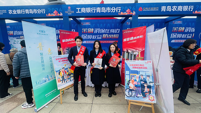 青岛分行积极践行金融工作的政治性、人民性,积极参加国家金融监督管理总局青岛监管局在青岛五四广场举办的“金融消保在身边 保障权益防风险--青岛金融CityWalk 城市漫步活动”,活动现场布放我行普惠金融特色产品和服务宣传展架、海报、宣传册等开展普惠金融宣传活动,主动为参与活动的小微企业、青岛市民普及金融知识、宣传惠民利民政策,以及了解市场主体和市民的金融服务需求,结合金融消保引导市场主体和人民群众识别和选择正规金融渠道,宣传我行普惠金融政策、产品和服务,广获参与活动市民的赞誉。